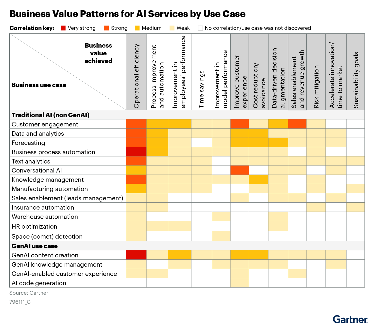 This shift is also reflected in Gartner’s analysis of how organizations generate business value from AI across different use cases. According to their research, the most significant results today come from process improvement and automation, operational efficiency, time savings, and improved employee performance — precisely the areas most impacted by workflow automation and AI-driven integration.