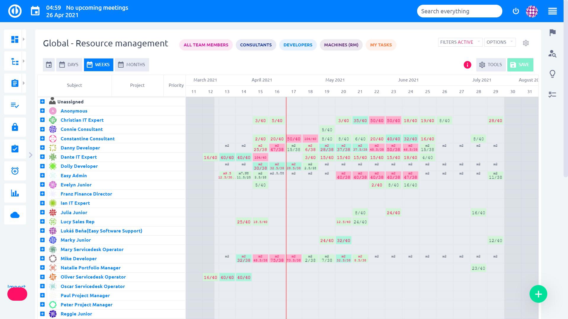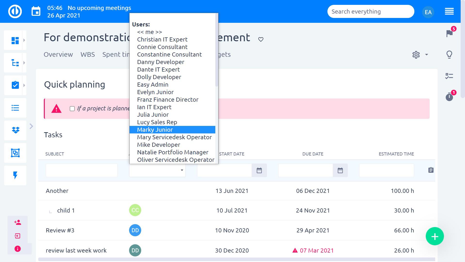 Esta é uma das configurações iniciais mais importantes no Easy8. Depois de fazer isso, você terá um controle perfeito sobre o rastreamento de tarefas em toda a organização - desde proprietários de projetos a funcionários em tempo parcial e até mesmo terceiros, como clientes ou colaboradores externos.