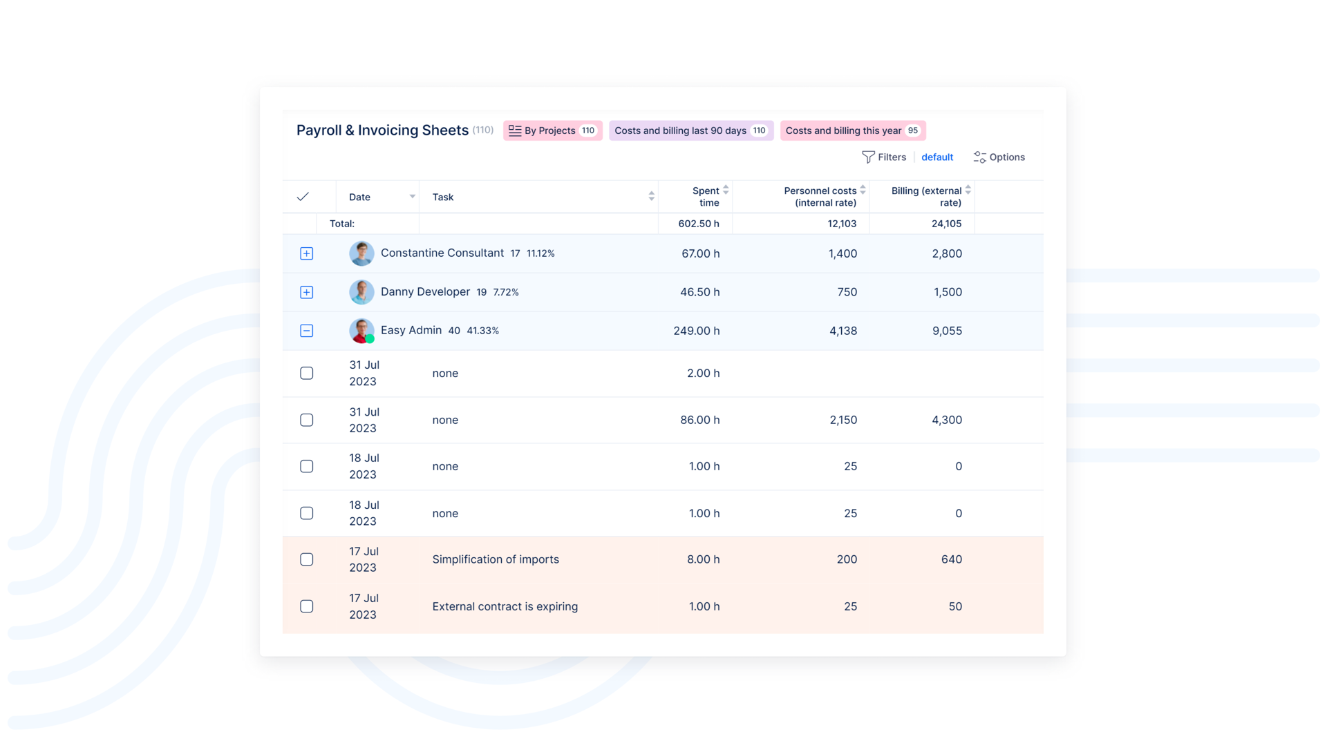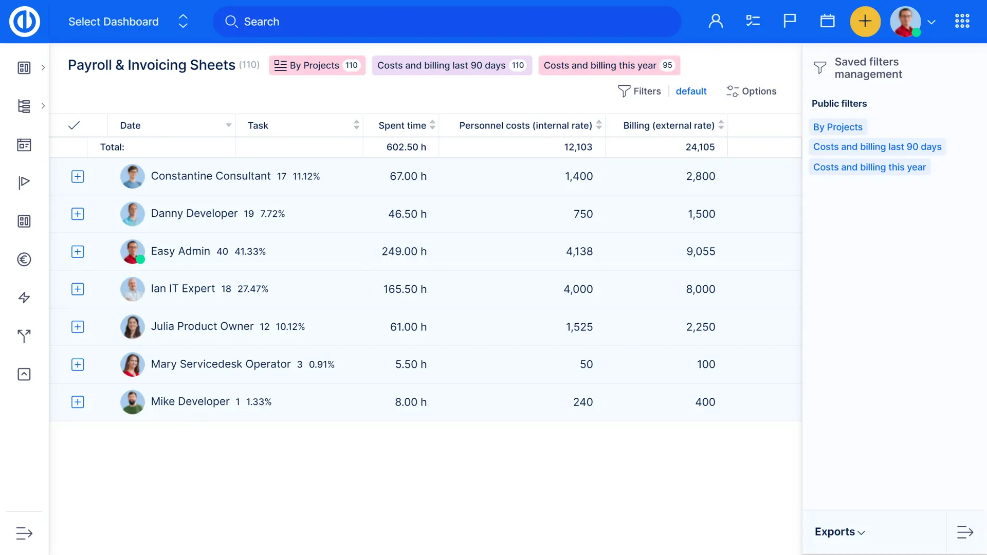 - Relatórios e informações fáceis sobre faturas / folhas de pagamento