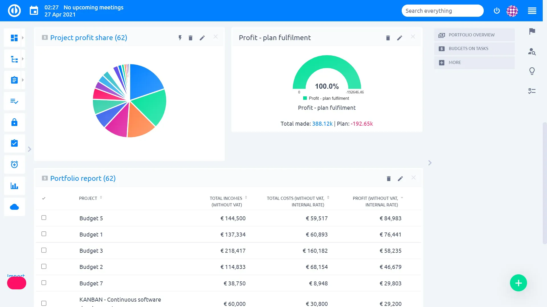 - rozpočet – plán vs. realita – díky Rozpočtem projektů budete moci nejenom nastavit hodinovky dle rolí a následně i celý budget, ale i rychle a do detailů porovnat rozpočtový plán projektu s aktuálním spendem,