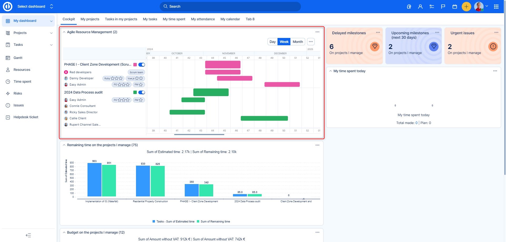 - Týmové hráče, protože widget na stránce Můj dashboard zobrazuje nejen vaše projekty, ale také spolupracovníky na těchto projektech