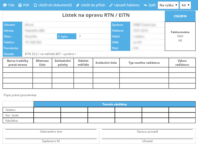 - Upravit šablonu - můžete upravit tiskovou šablonu