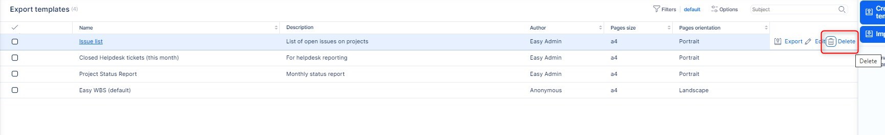 Pokud si přejete šablonu smazat, přejděte na přehled a vyberte možnost " smazat" přímo u vybrané šablony v seznamu.