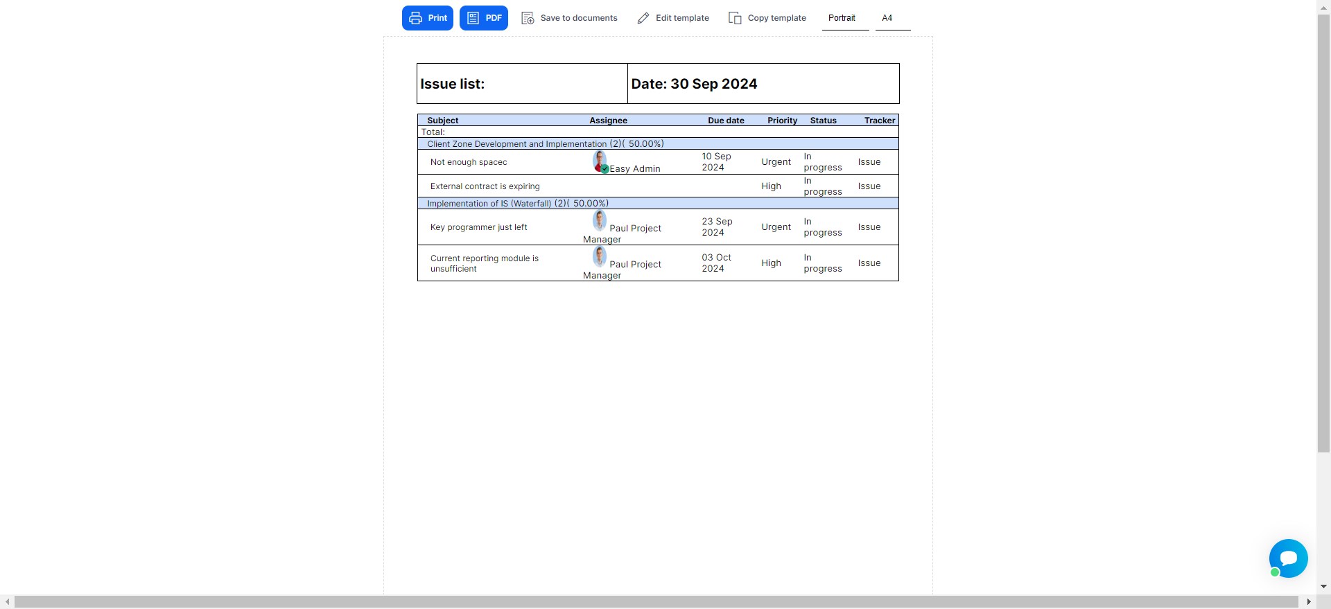 Stručně řečeno, tiskové šablony v Easy Projectu nemusíte využívat jen k přímému tisku, ale je to také skvělý nástroj pro tvorbu a sdílení vlastních byznys výstupů.