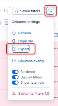 - Exportujte seznam pomocí tlačítek v pravém dolním rohu