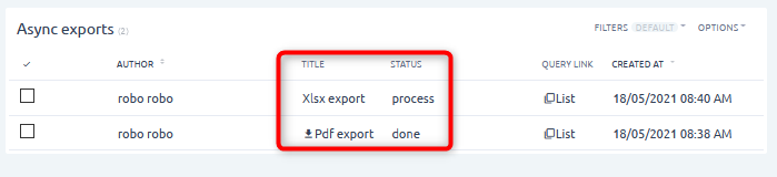 - Budete přesměrováni na stránku /easy_async_exports, kde uvidíte seznam svých nedávných exportů.