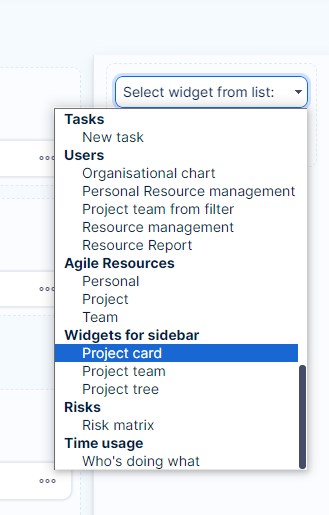 Klikněte na zelené tlačítko "Uložit stránku a pokračovat". Widget Správa projektu se obratem objeví v bočním menu na projektovém dashboardu jako na obrázku níže:
