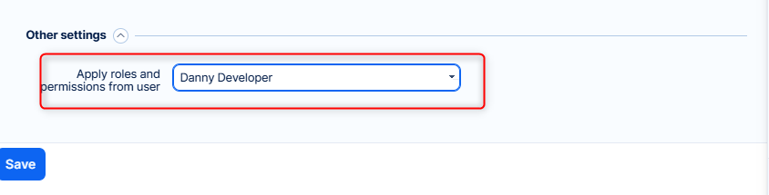 Poslední věc, kterou můžete udělat, je aplikovat role a oprávnění jiného uživatele. Když je možnost "Aplikovat role a oprávnění od uživatele" vybrána při vytváření nového uživatele nebo úpravě stávajícího, mějte na paměti, že se neaplikují role a oprávnění získaná prostřednictvím členství ve skupině, ale pouze osobní role a oprávnění daného uživatele. Členství ve skupině a související role a oprávnění skupiny nelze zkopírovat z jednoho uživatele na druhého.