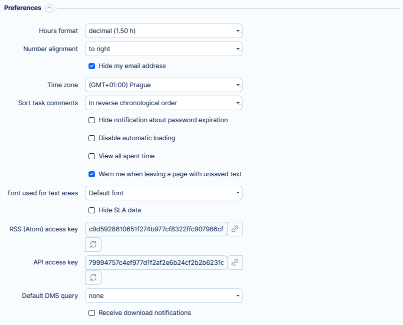 - Nastavení formátu hodin v profilu uživatele se nevztahuje na Timesheety, protože ty vždy používají krátký formát, aby se zabránilo překrývání textu s dlouhým formátem.