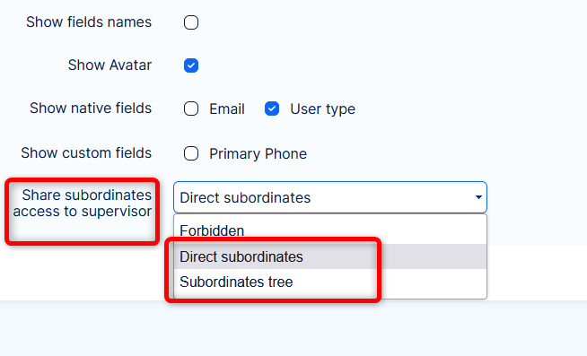 - Sdílení respektuje nastavení viditelnosti role podřízeného.