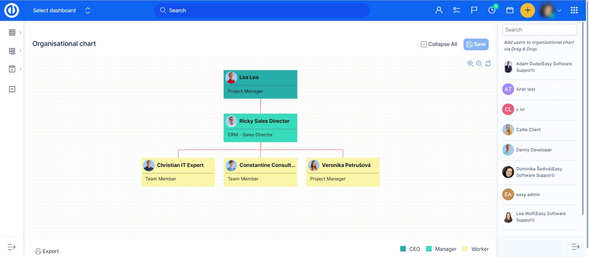 - Nadřízený nyní dostane také přístup k entitám CRM (leady, opportunity, klienti a partneři) a Úkolům.