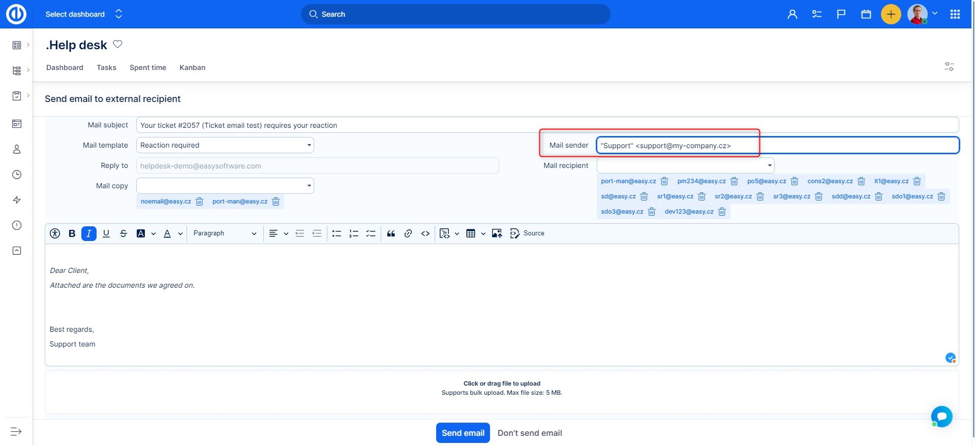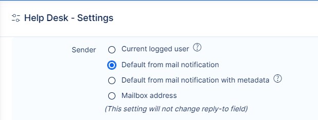 - Nastavení helpdesku – odesílatel e-mailu je uživatel (tj. uživatel s doménou vaší společnosti).