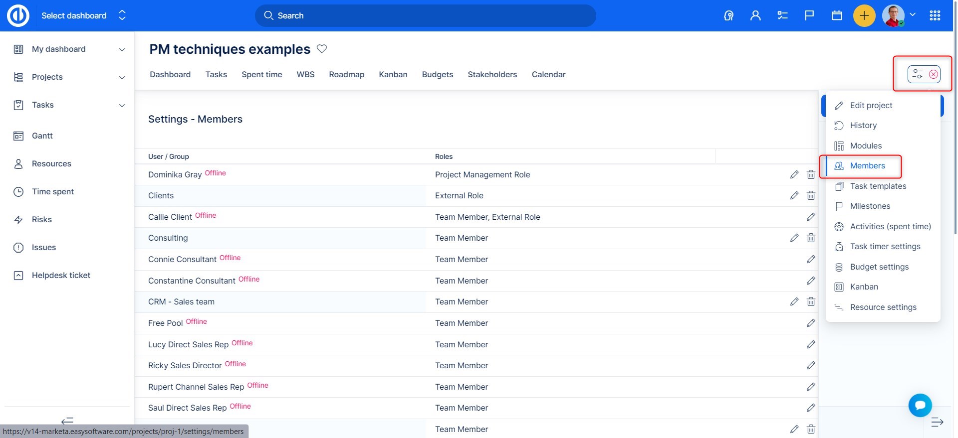 Otevřete vybraný projekt >> Ovládání projektu >> Členové