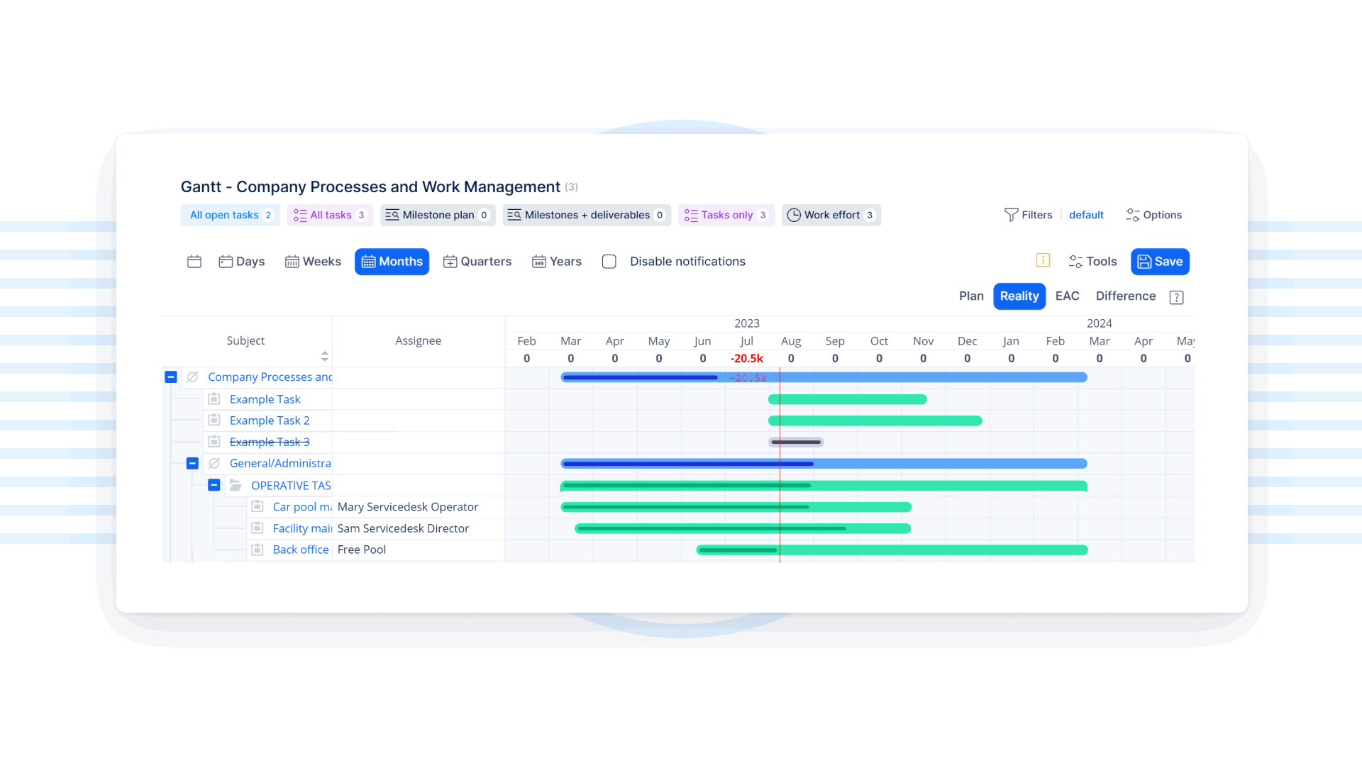 ... protože s Easy8 získáte přístup i k profesionálním nástrojům jako je WBS, řízení zdrojů a úkolů, sledování času, Kanban nebo Earned value management – to vše jak pro vás, tak pro váš tým. Všechny tyto funkce získáte v jednom adaptabilním řešení, které přináší harmonii do všech fází vašeho projektového řízení.