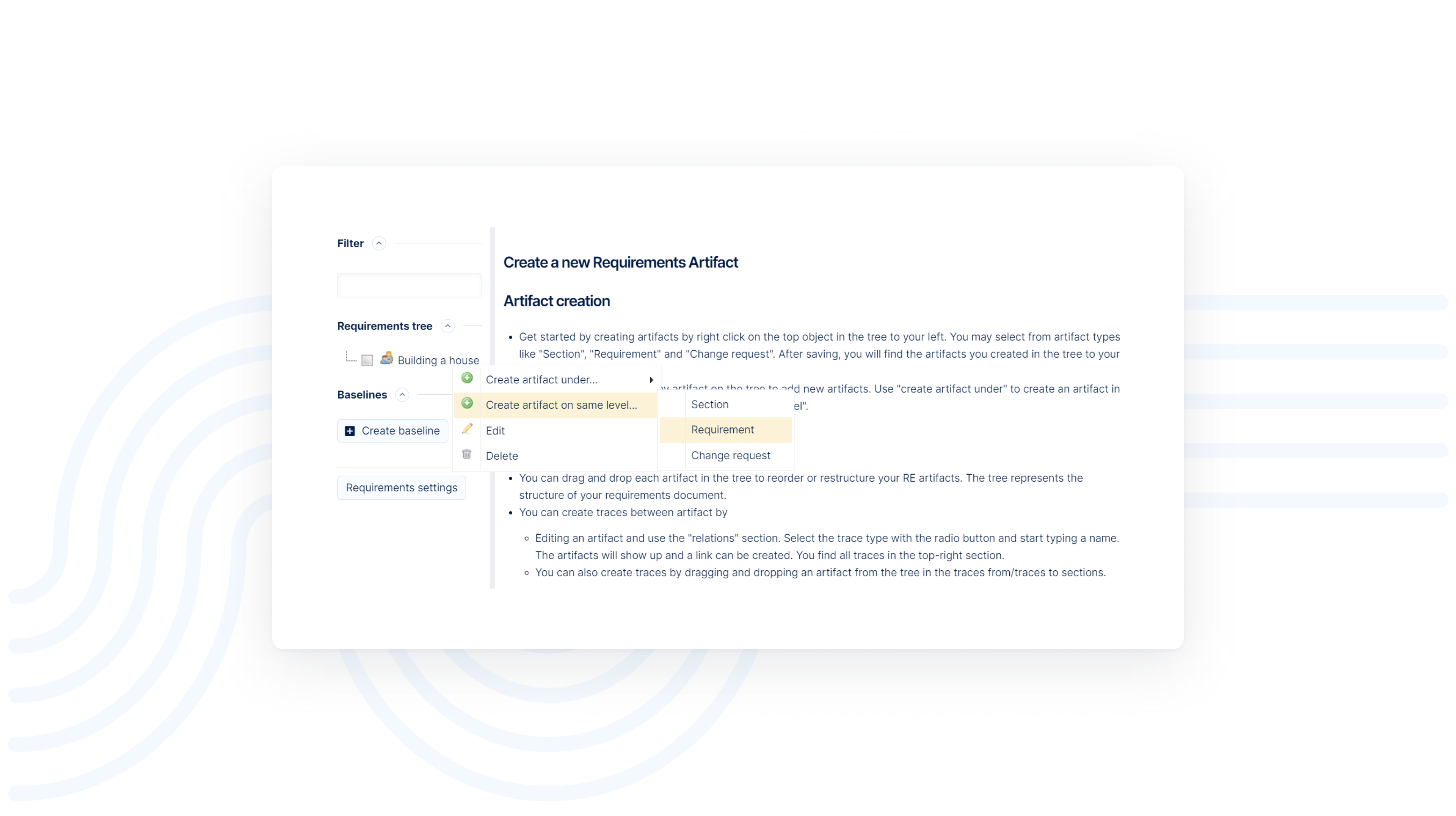 Pro technicky pokročilé projekty, které vyžadují mnoho malých prvků a detailů pro vytvoření významných produktů, jako jsou vozidla nebo stroje, je Requirements Management nezbytný. Můžete snadno generovat artefakty, které odrážejí atributy v hierarchické struktuře požadavků.