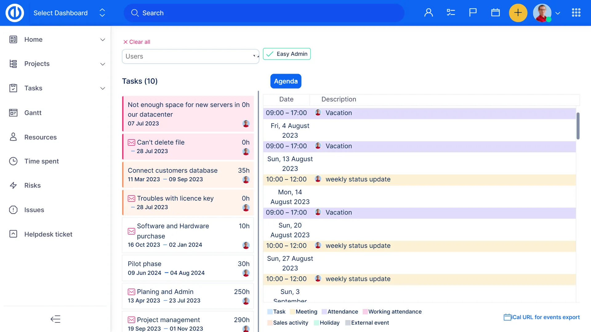 Risk Management je povinný proces pro každý správně řízený projekt. Tento nástroj umožňuje nastavit rizikovou matici prostřednictvím vaší organizace, spravovat rizika v projektech a poskytovat celosvětové rizikové hlášení a přehled pro management. Celosvětový modul je vhodný pro role Line Manager, Risk Manager nebo Project Management Officer (PMO), zatímco projektový modul je optimální pro Project Manager, což mu umožňuje řídit rizika projektu řízeným způsobem pro každý konkrétní projekt pod jeho dohledem.