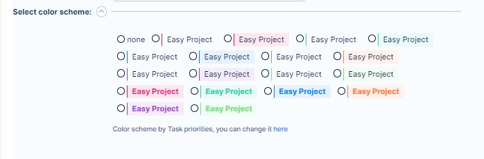 With this setting, you can assign different colors to distinguish between various task types. Simply choose what color scheme you want for each task type. To make it work, you have to go to settings and set you want to see the color scheme by task type.