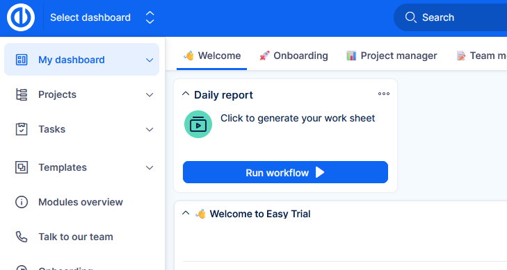Workflow button on dashboard