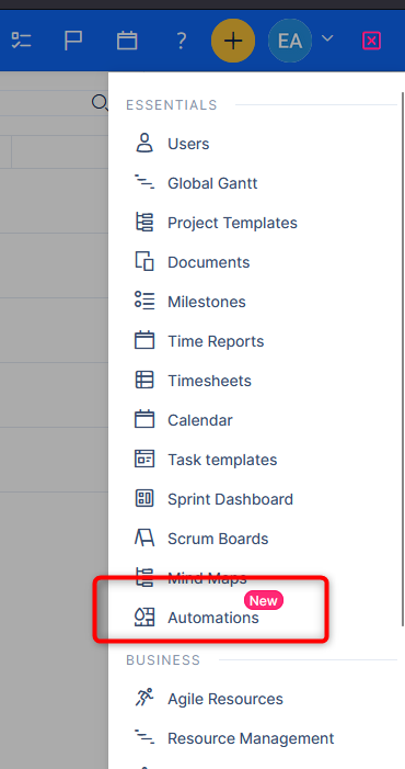 In the global menu (top right), find Automations.