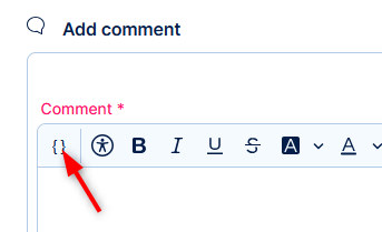 - Add comment - may contain dynamic values from the task (click the curly brackets in the text editor)