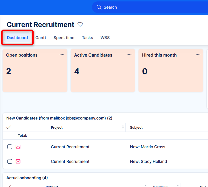 Project dashboard