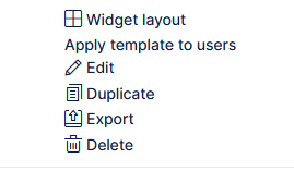 For the sake of saving configuration time and/or standardization, most dashboards make use of templates. Templates are available for My dashboard, Project dashboards and Feature dashboards.