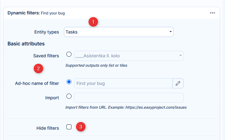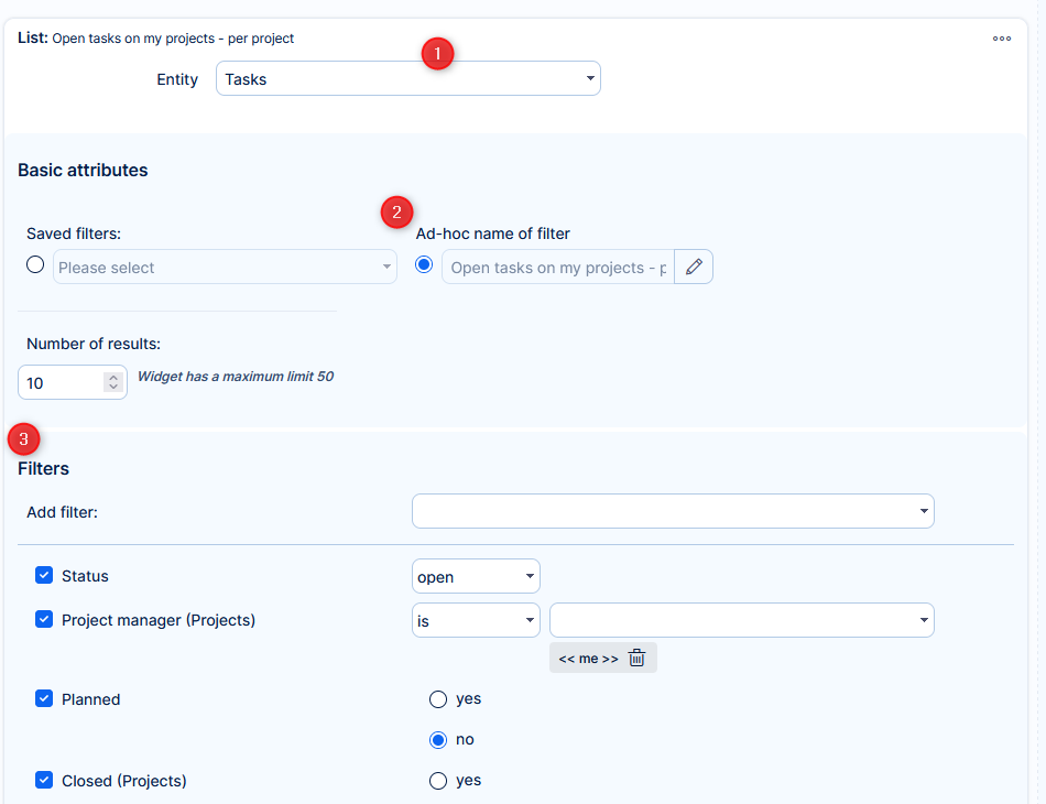 - Set filters for the entity
