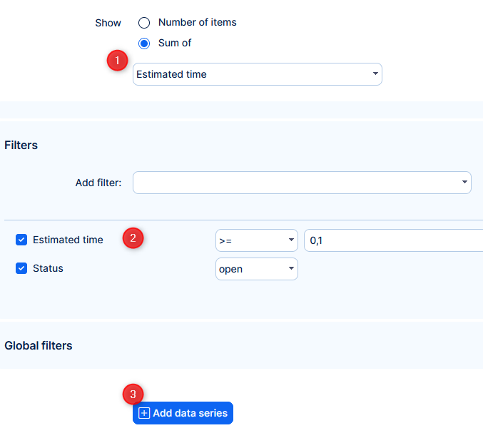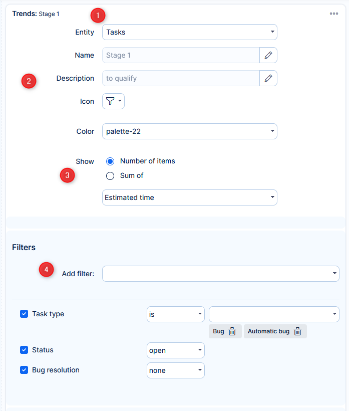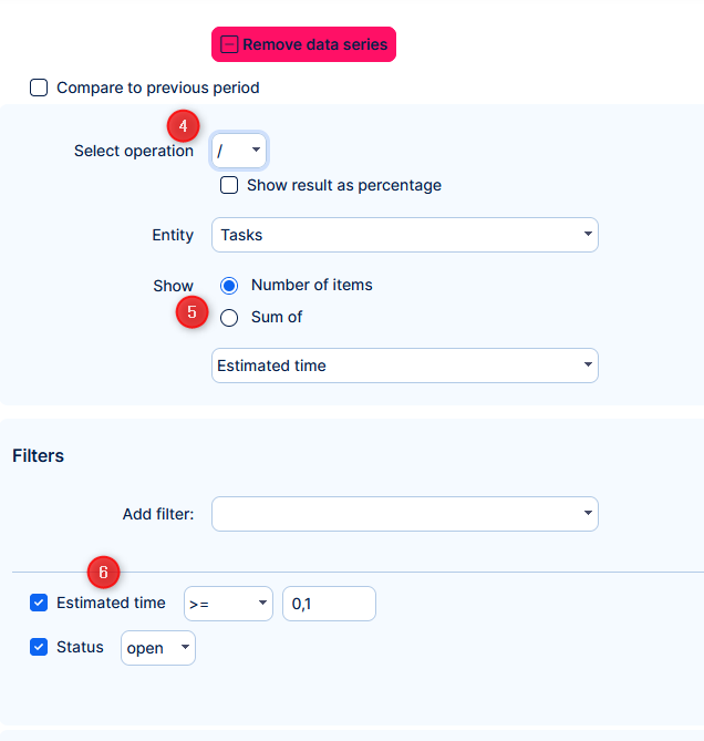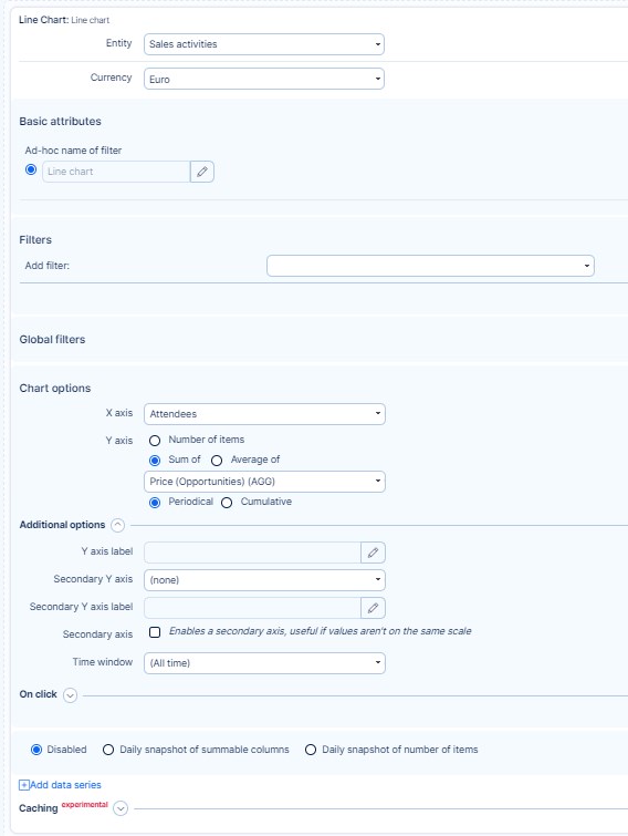 - Select which value will be on the chart. You can select the number of the entities but also sum or average of a numeric attribute of the entity.
