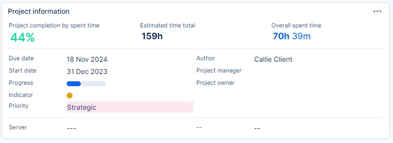 - Project dashboard - the first item in the menu when you access a project