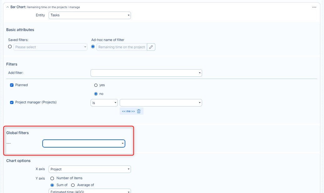 In order to select which of the dashboard modules are dependent on global filters and which are not, you need to pair global filters with those modules where you want to use them. To do so, go to module settings and navigate to Global filters section. Here you just need to check the filters you want to use with that module. Please note that only those global filters that can be used with the particular module are available to select.