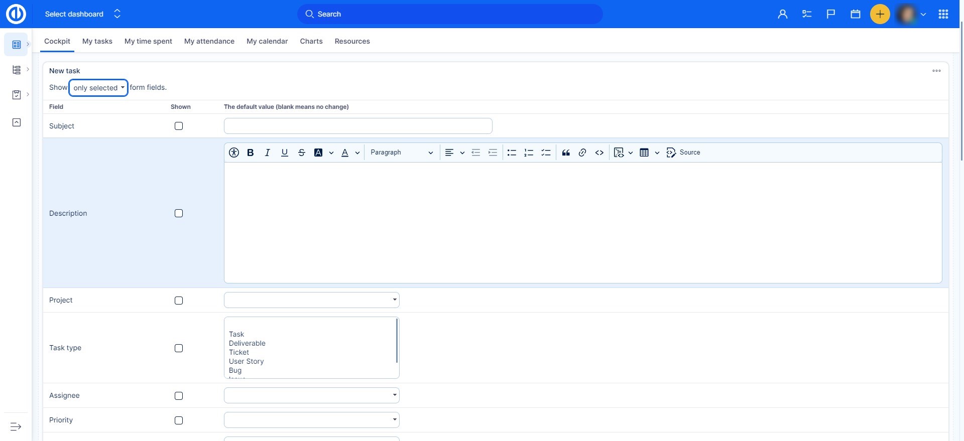 Be mindful while selecting the fields, as some fields are essential while creating a task (subject, tracker). Not including those can cause issues while creating tasks this way.