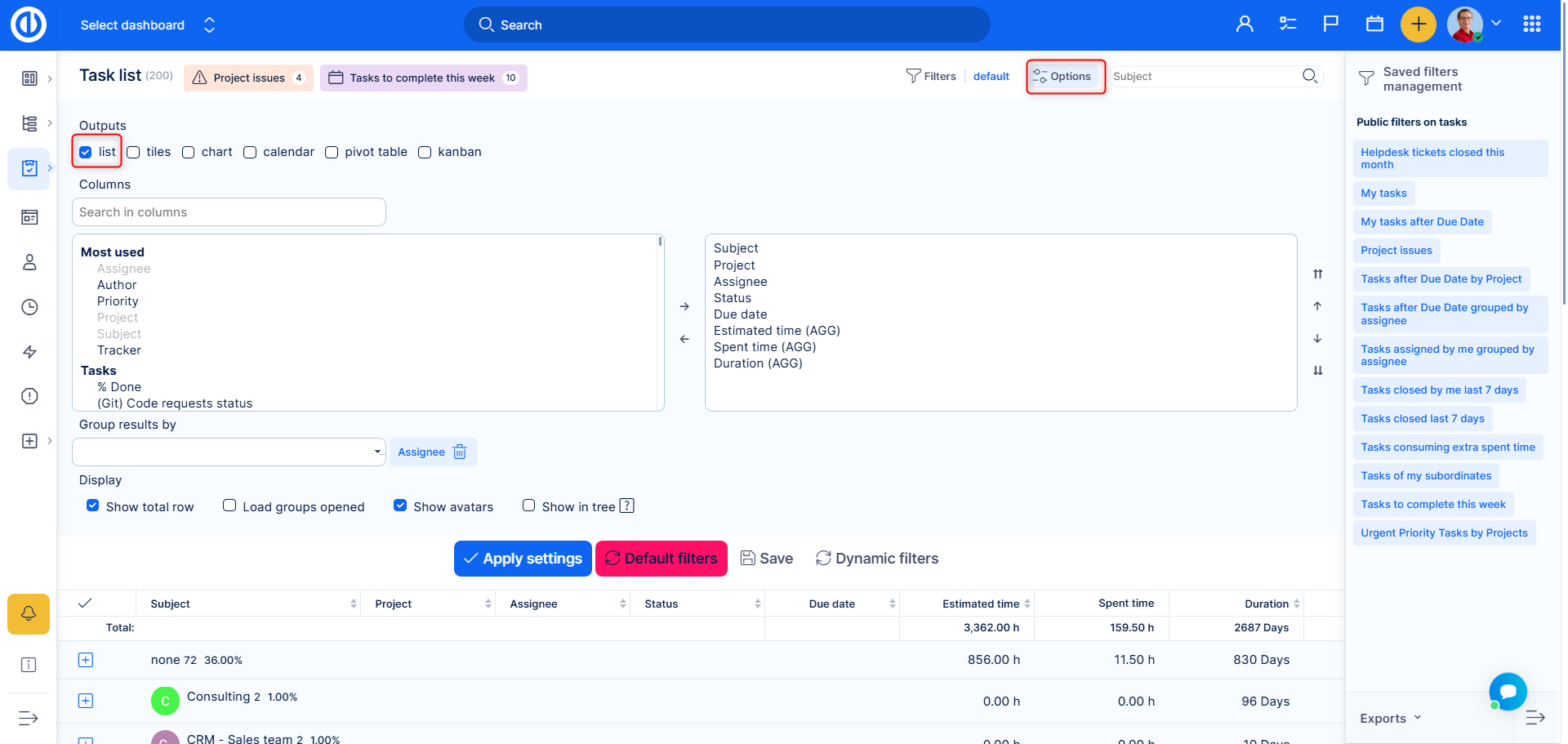 Fixed option will let you enter a fixed number. For example a worker should log 8 hours of work everyday, so in this case the fixed number is 8. To see logged time for the current day, set filters the following way : User is <<me>>, Date is Today