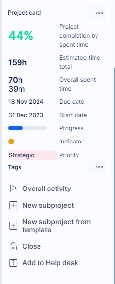 Project card will show project data in a simple overview, unlike project information, you will also have the following options available directly from it: