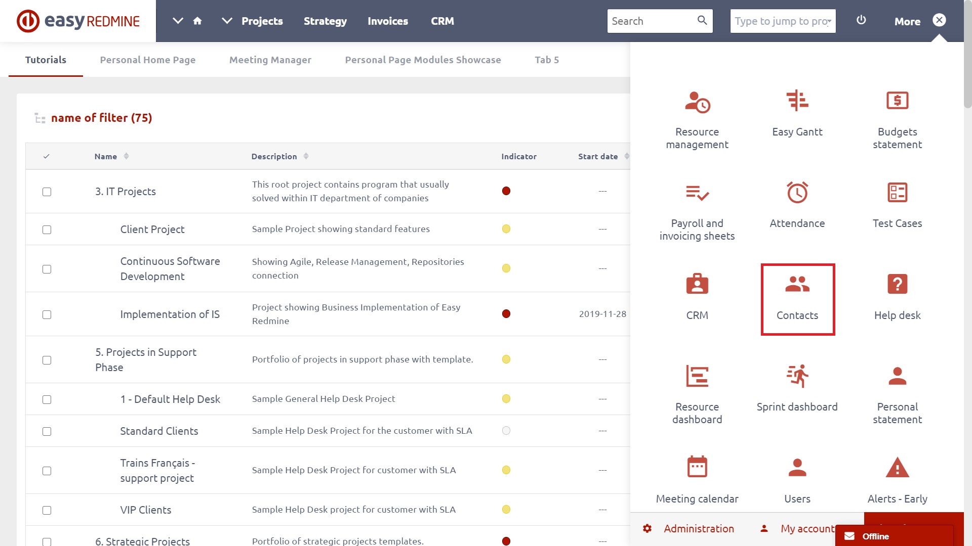 Open Contacts from the More menu or Administration.