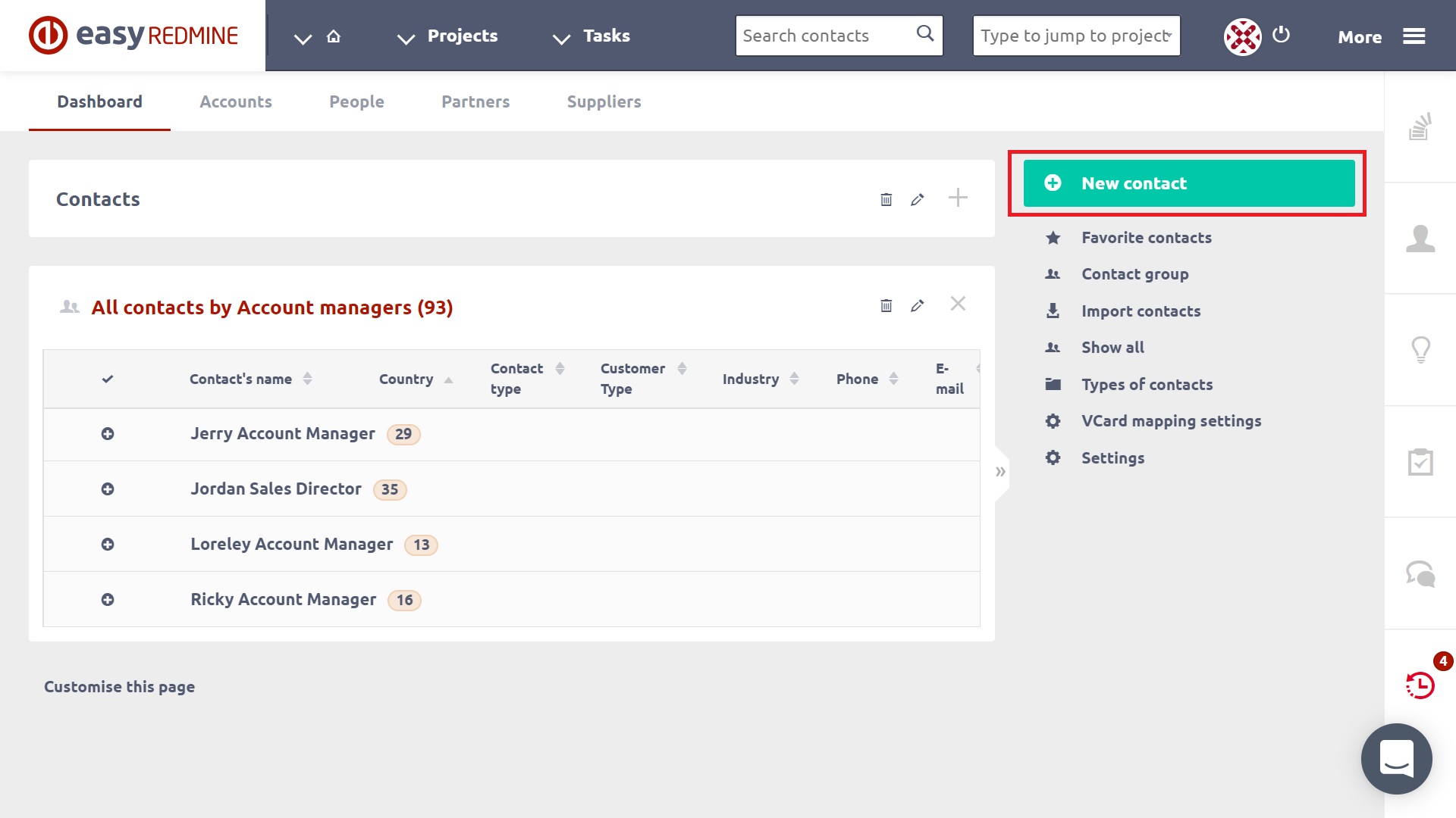 - Types of contacts - here you can create new types of contact or modify/delete existing ones