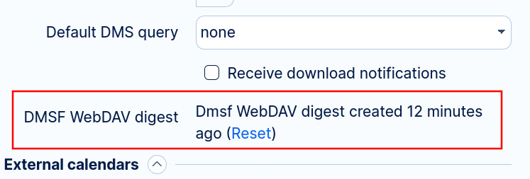 - WebDAV: [Activated] WebDAV once enabled can be found at http://.../dmsf/webdav/[project identifier]