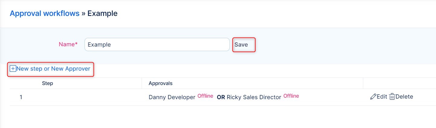 - Add a new step by clicking on the button AND or OR depending on the relation of approvers in the step.