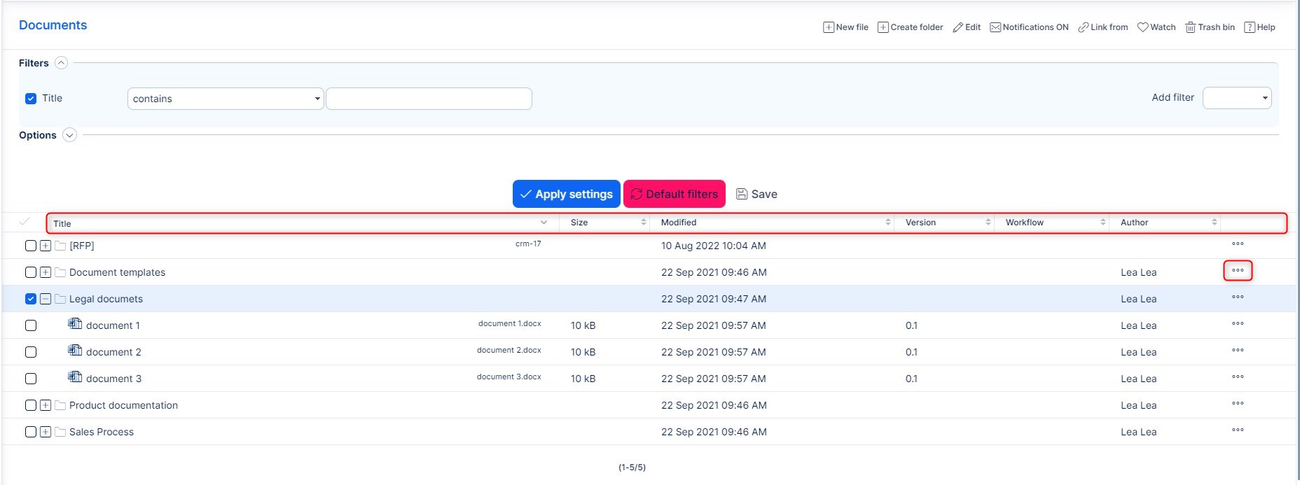 You see the file titles and names, their size, last modification date, version, workflow state and who added them (the author). Furthermore, you can lock or delete files. A movement of a document creates a new revision whose author is the user who moved the document. Therefore, the document's author is changed to the current user according to the last revision.