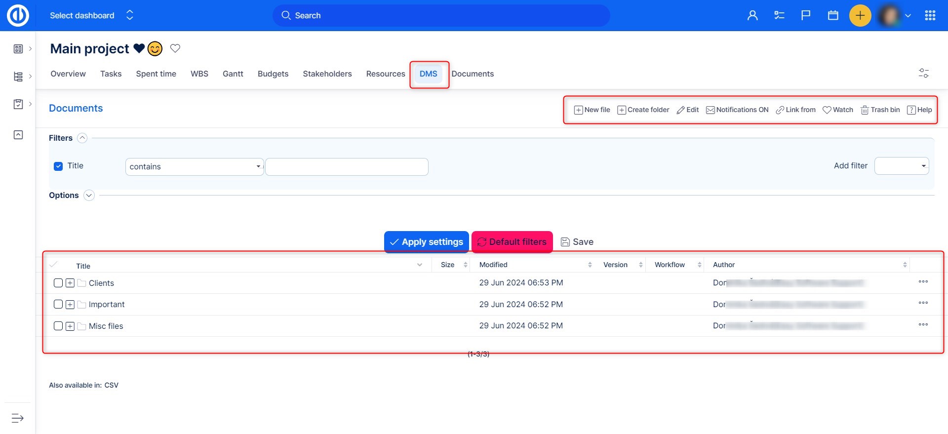 - Sub-projects as sub-folders: Add sub-projects as sub-folders into DMS view- Default: no