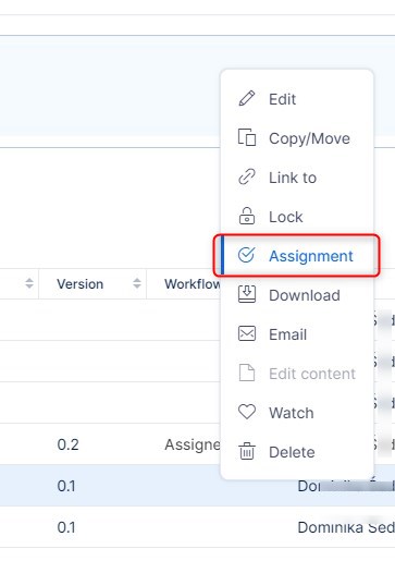 1. Assign an existing approval workflow to the selected document by selecting Assignment from the toolbar.