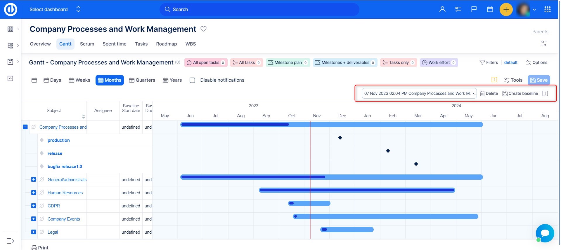 How to work with project baselines