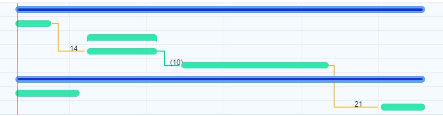 - the application identifies the last task and follows the relations towards the past; the sequence of tasks that is found is displayed as a critical path