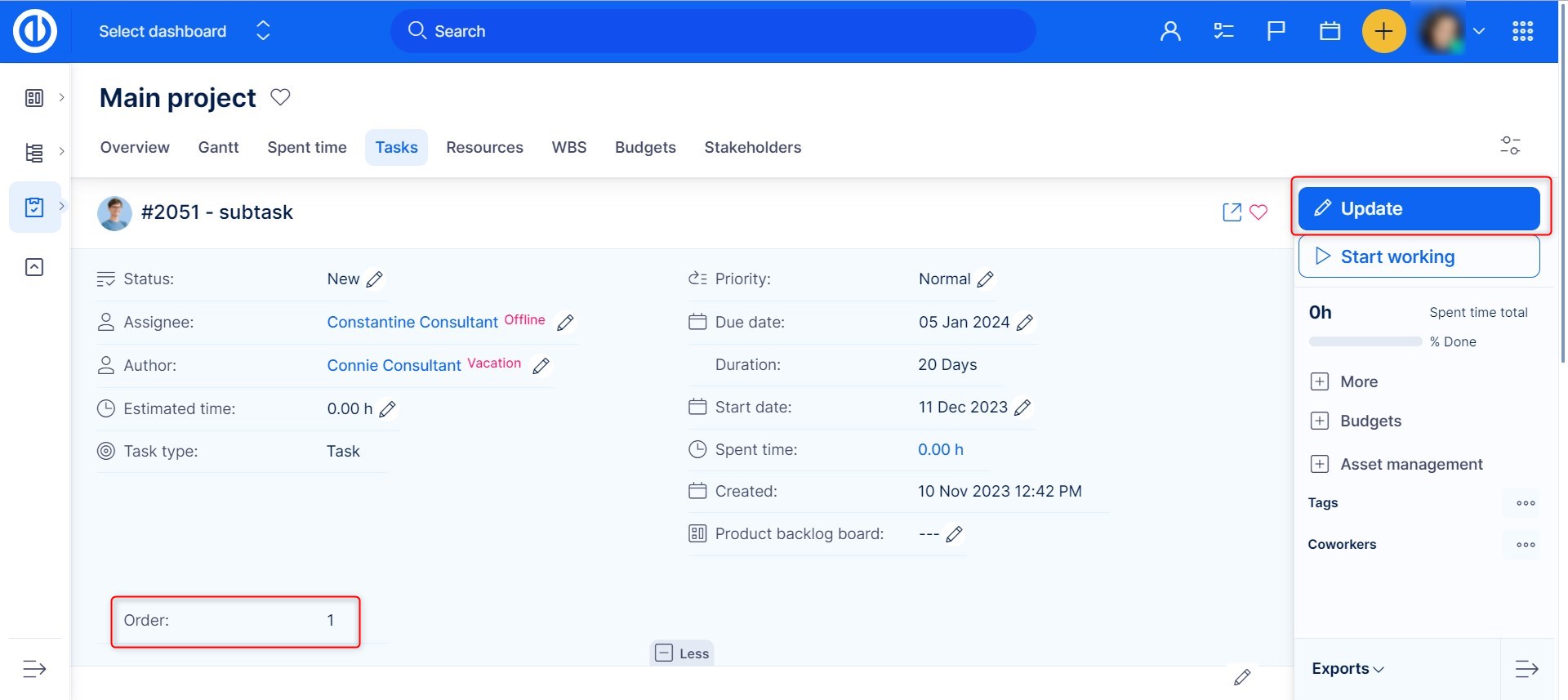 Afterward, update several tasks within the same project and enter some values into the custom field "Order" according to which you need to have them sorted. For example, task 1 has order 1, task 2 has order 2 etc.