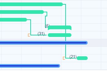 When ticked, this option shows lowest valid dates for tasks defined by relations or parent. As illustrated below, the square bracket indicates the lowest date you can move the task to, but not any further because it's related to another task that precedes it. This function is visible only on the Global Gantt view. Brackets will not appear in project Gantt.