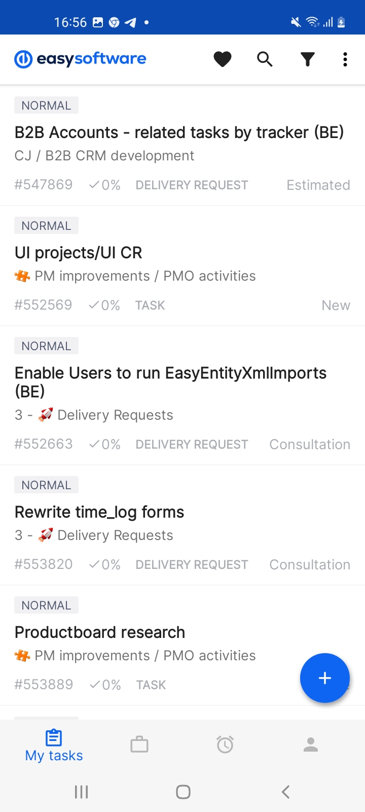 The Easy8 mobile app is intended for basic work with task tracking and time tracking. For more advanced work operations, use the web browser app instead.