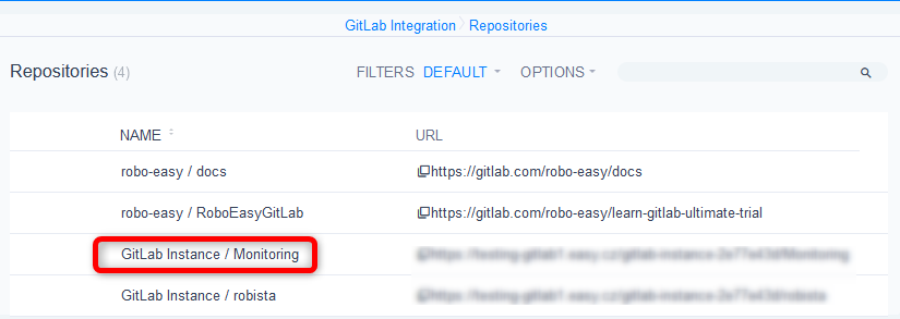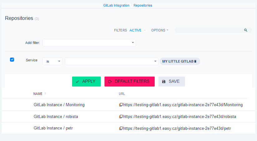The repositories list is functionally the least interesting, although truly necessary. A useful filter worth mentioning is called Service, which you will use if you have various GitLab instances connected and you need to search only through some of them.