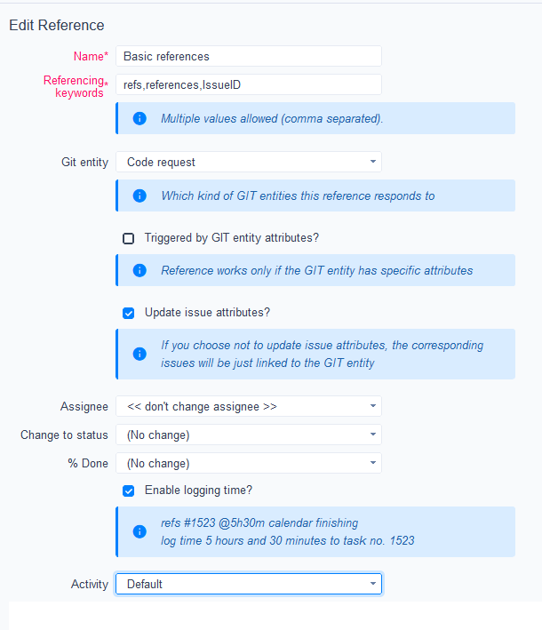 - On commits, the referencing keywords need to be entered in the commit message