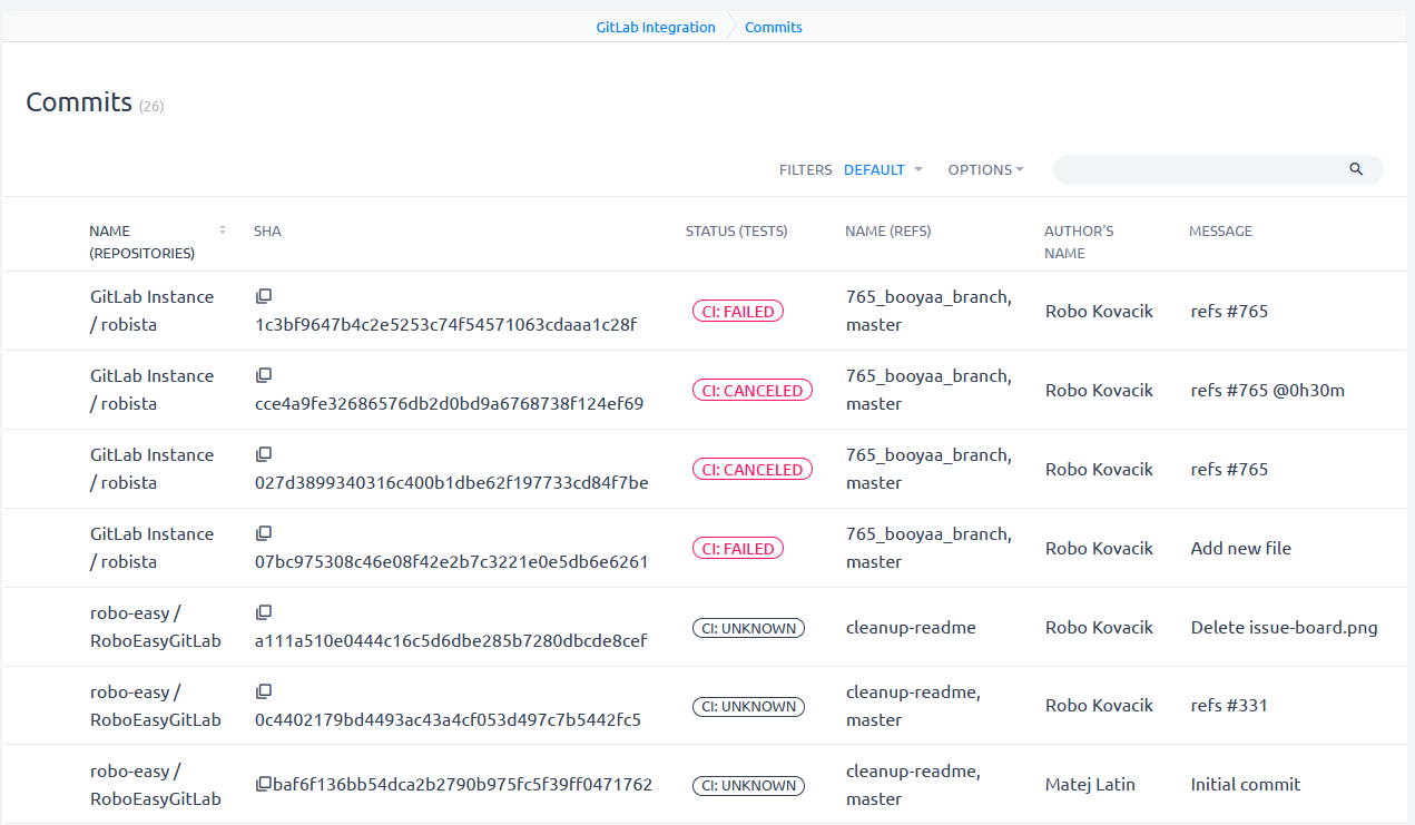 Similar to merge requests, the list of commits also provides vast reporting possibilities. The commit list also contains attributes from tests.