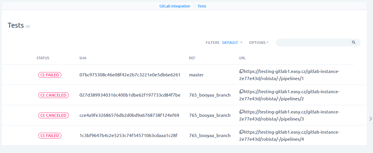 Test also do not have their own detail view, clicking will take you to GitLab.