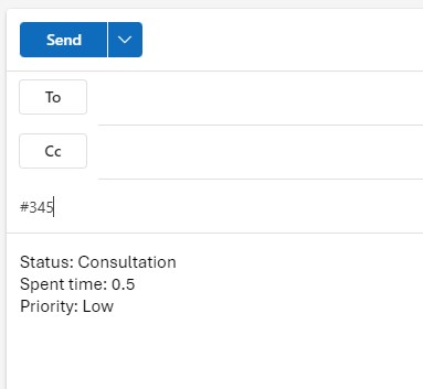 This feature is available to use only with Help desk. It allows to log spent time and change task attributes not just in the standard user interface but also by sending an email message with defined commands to a help desk mailbox. This feature aims to provide a quicker way of logging time and updating tasks in many cases, especially on slower computers or internet connections where working with the full-fledged website version of Easy8 could be time-consuming.
